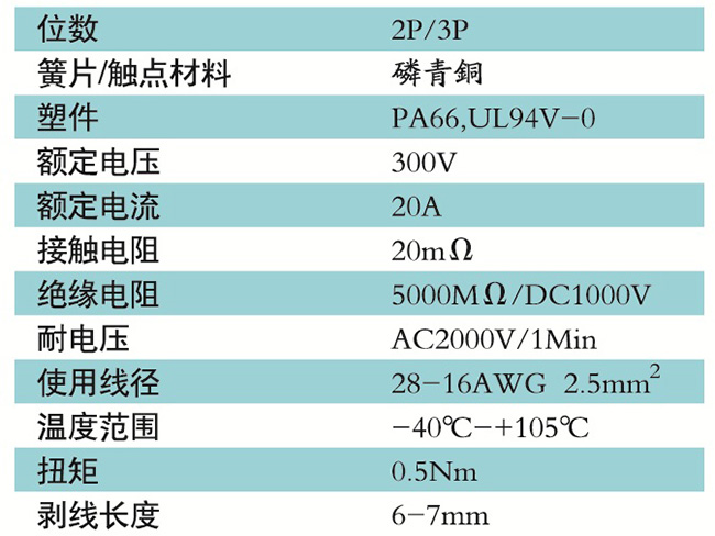 接線端子的絕緣材料用改性的尼龍(PA66),能達到或超過IEC947-7-1及EN60947-7-1標準,阻燃等級達到UL94,V-0具有良好的電氣性能和機械性能。螺絲用高強度的鋼制成鍍鋅或鎳處理,導電體四方針用合金銅制成表面鍍錫,壓片采用彈性及極強的磷青銅表面鍍錫或鎳;壓線框用抗應力裂縫腐蝕的合金銅制成,這些金屬表面還鍍錫或鍍鎳加以保護。設計完全符合IEC60947-7-1.GB14048.7等標準。