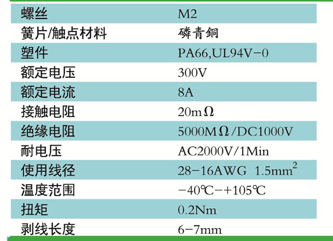 接線端子的絕緣材料用改性的尼龍(PA66),能達(dá)到或超過IEC947-7-1及EN60947-7-1標(biāo)準(zhǔn),阻燃等級(jí)達(dá)到UL94,V-0具有良好的電氣性能和機(jī)械性能。螺絲用高強(qiáng)度的鋼制成鍍鋅或鎳處理,導(dǎo)電體四方針用合金銅制成表面鍍錫,壓片采用彈性及極強(qiáng)的磷青銅表面鍍錫或鎳;壓線框用抗應(yīng)力裂縫腐蝕的合金銅制成,這些金屬表面還鍍錫或鍍鎳加以保護(hù)。設(shè)計(jì)完全符合IEC60947-7-1.GB14048.7等標(biāo)準(zhǔn)。