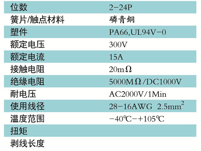 接線端子的絕緣材料用改性的尼龍(PA66),能達(dá)到或超過IEC947-7-1及EN60947-7-1標(biāo)準(zhǔn),阻燃等級達(dá)到UL94,V-0具有良好的電氣性能和機(jī)械性能。螺絲用高強(qiáng)度的鋼制成鍍鋅或鎳處理,導(dǎo)電體四方針用合金銅制成表面鍍錫,壓片采用彈性及極強(qiáng)的磷青銅表面鍍錫或鎳;壓線框用抗應(yīng)力裂縫腐蝕的合金銅制成,這些金屬表面還鍍錫或鍍鎳加以保護(hù)。設(shè)計(jì)完全符合IEC60947-7-1.GB14048.7等標(biāo)準(zhǔn)。